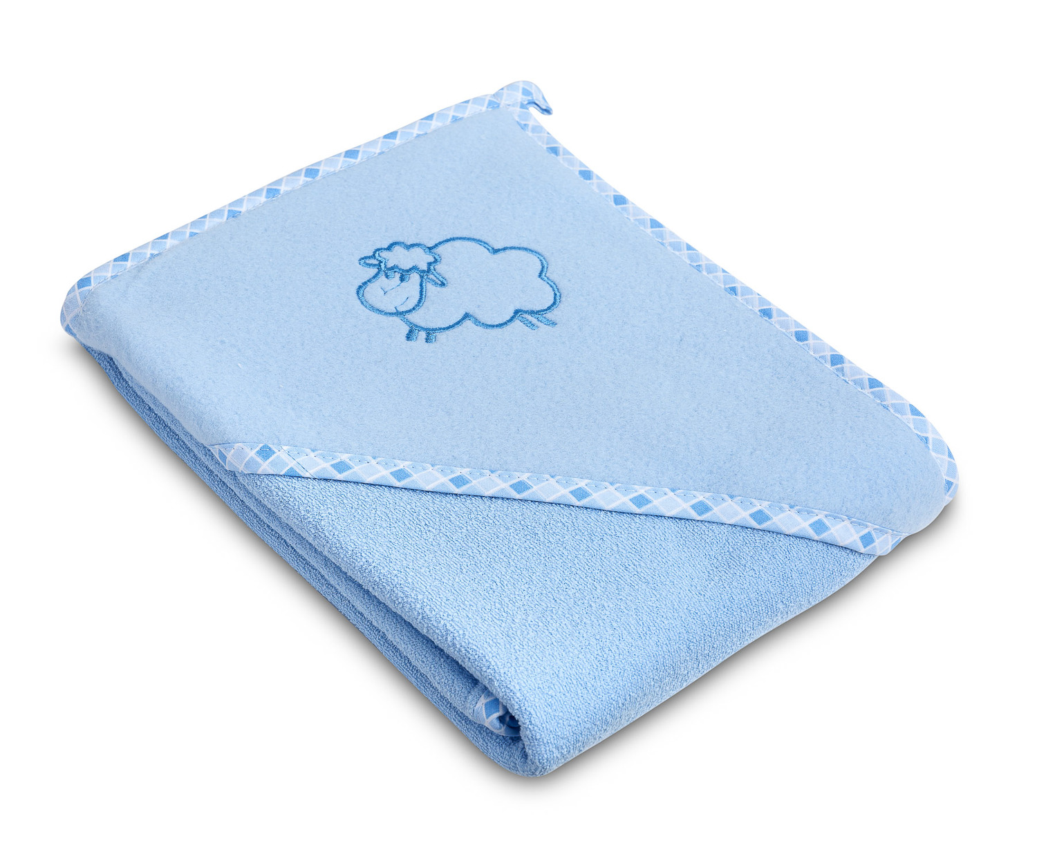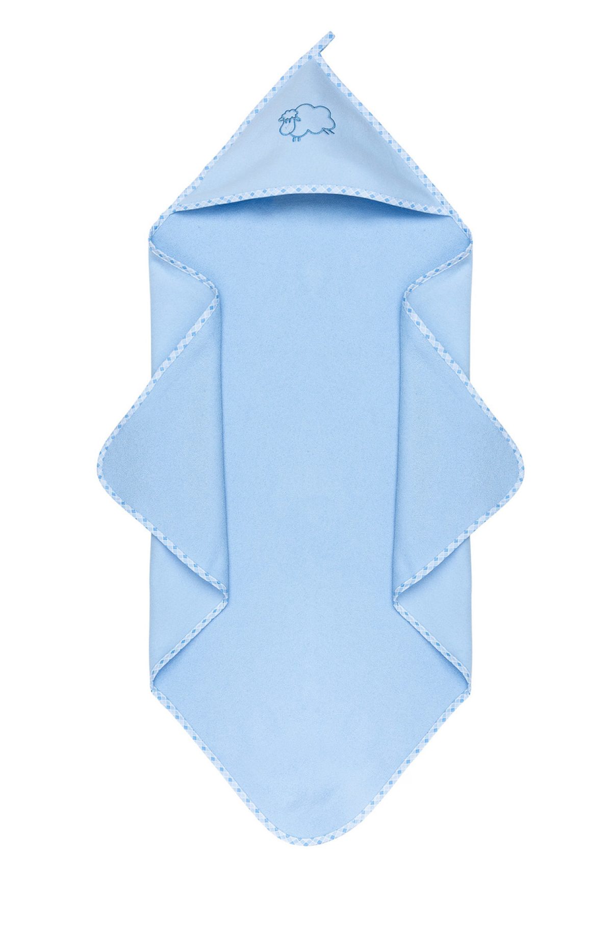 – grappige borduursels van een lam op de capuchon